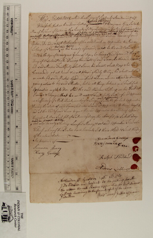 Indenture of Robin, Indian Boy, to Andrew Lothrup