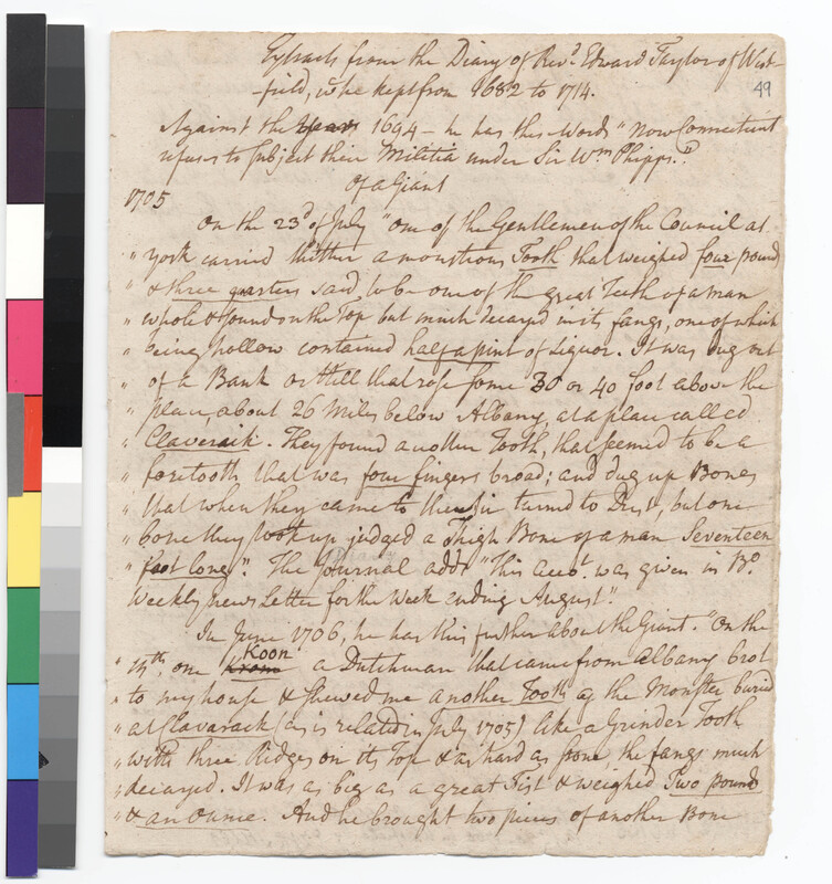 Extracts from the Diary of Rev. Edward Taylor regarding a Giant