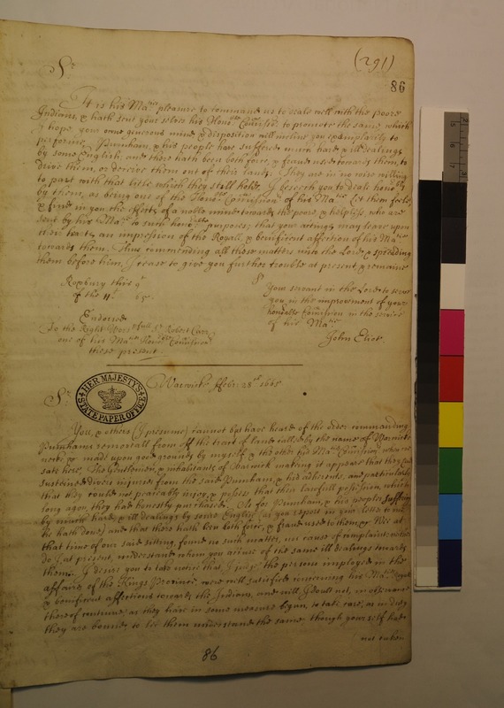 King's Commissioners to Lord Arlington regarding Pumham and the Indians with him