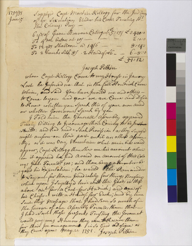Letter from Martin Kellogg to Joseph Pitkin, George Wyllys, and Daniel Edwards