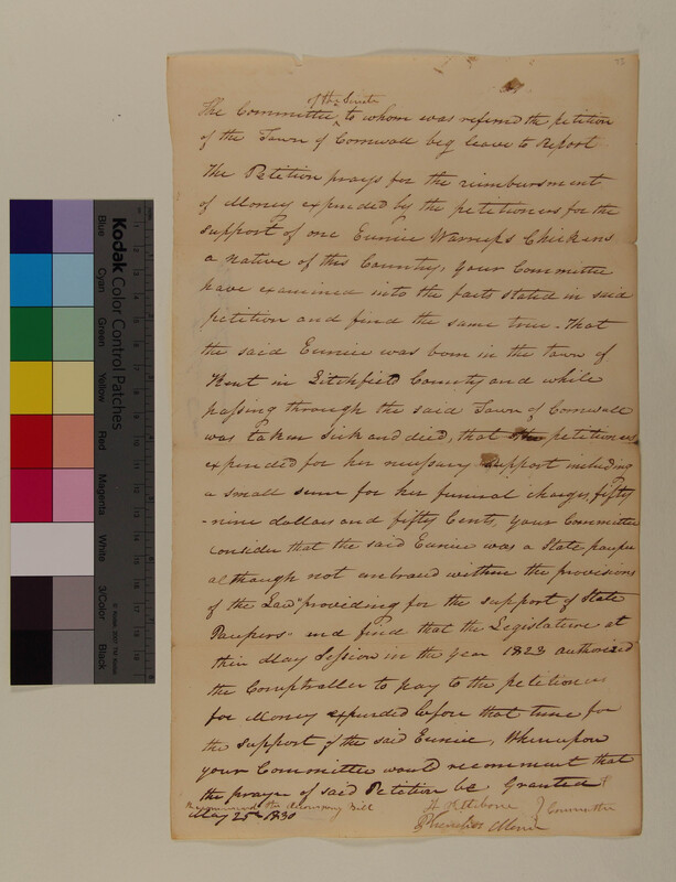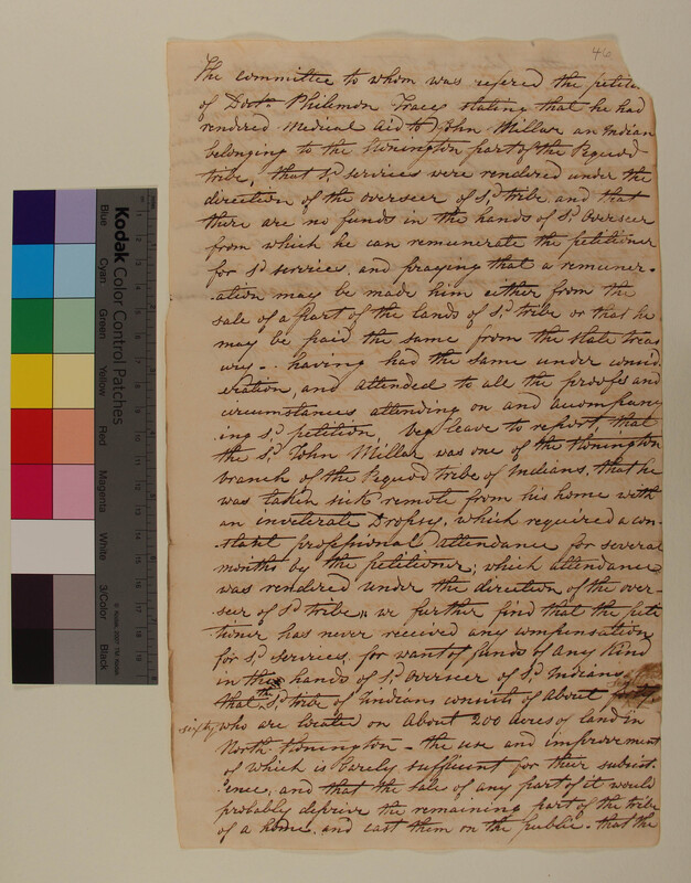 Report of the Committee upon the Petition of Doctor Philemon Tracy Seeking Compensation for Services Provided a Member of the Eastern Pequot Tribe