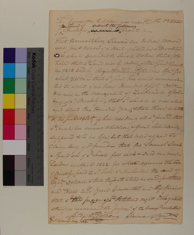 Report of the Committee on the Petition of Joseph Williams and Others concerning the Mohegan Tribe of Indians