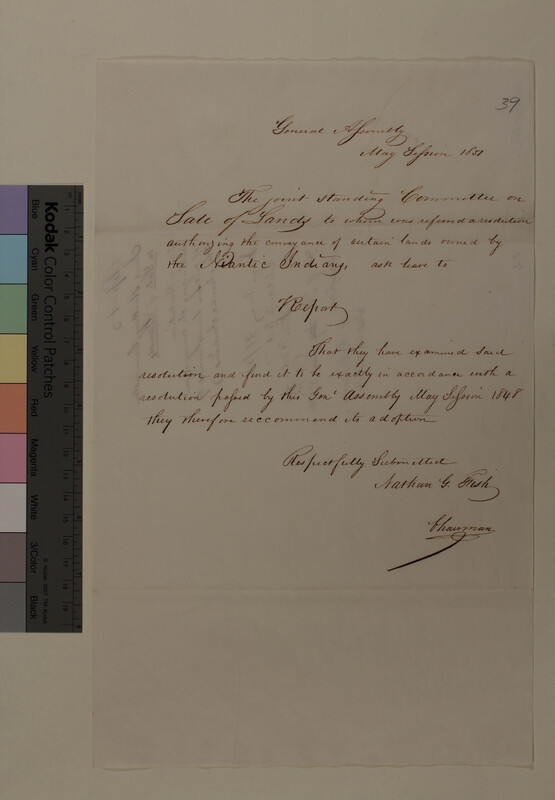 Report of the Committee upon a Resolution Authorizing the Conveyance of Certain Lands owned by the Niantic Indians