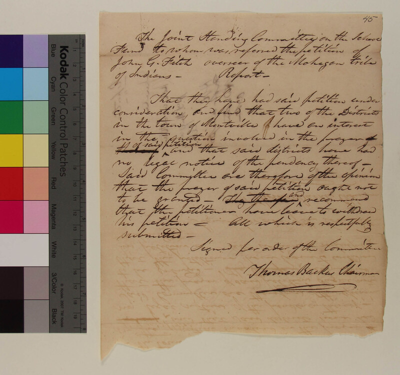 Report of the Committee on the Petition of the Overseers of the Mohegan Tribe concerning Difficulties Associated with the Identity of the Tribe
