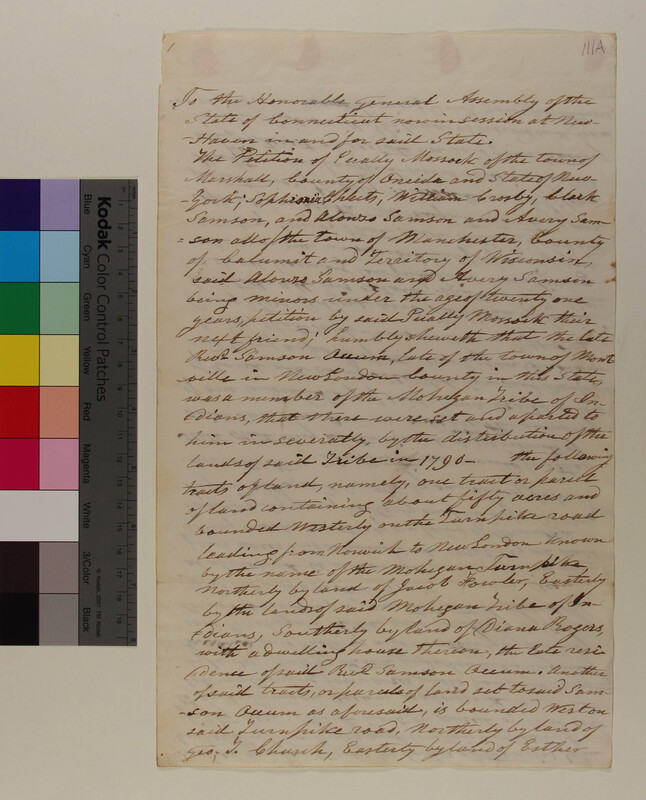 Petition of Joseph Williams and Others concerning the Mohegan Tribe of Indians
