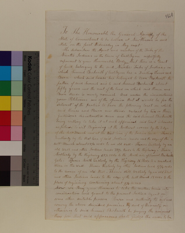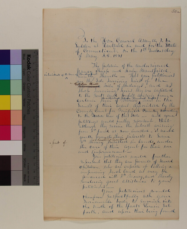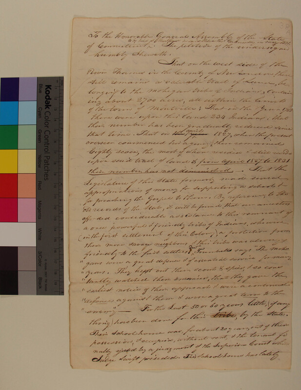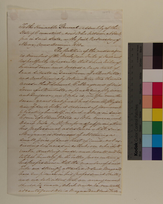 Petition of S.E. Maynard, Overseer for the Mohegan Indians, to the Connecticut General Assembly concerning a Road across Mohegan Lands