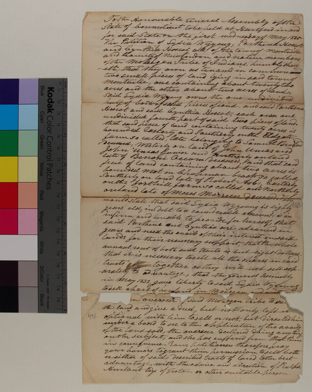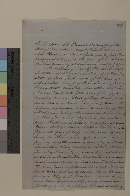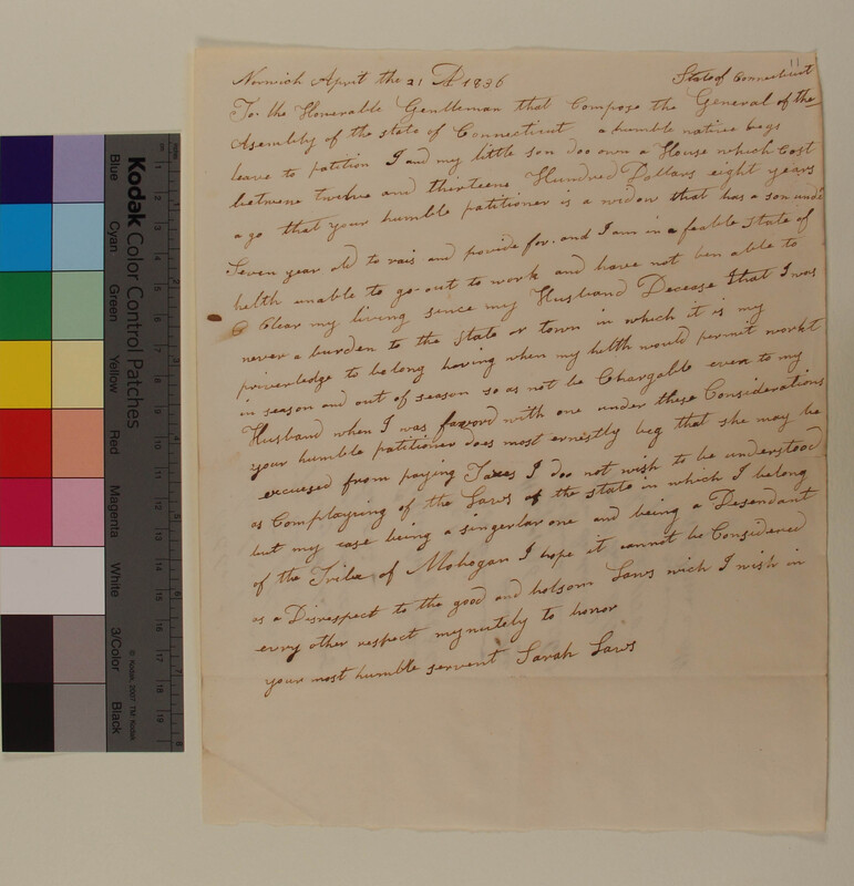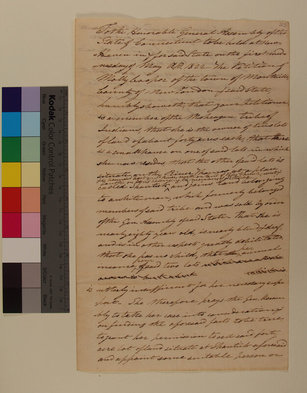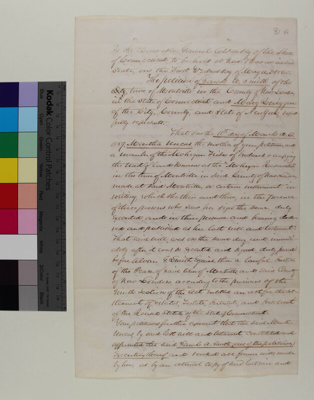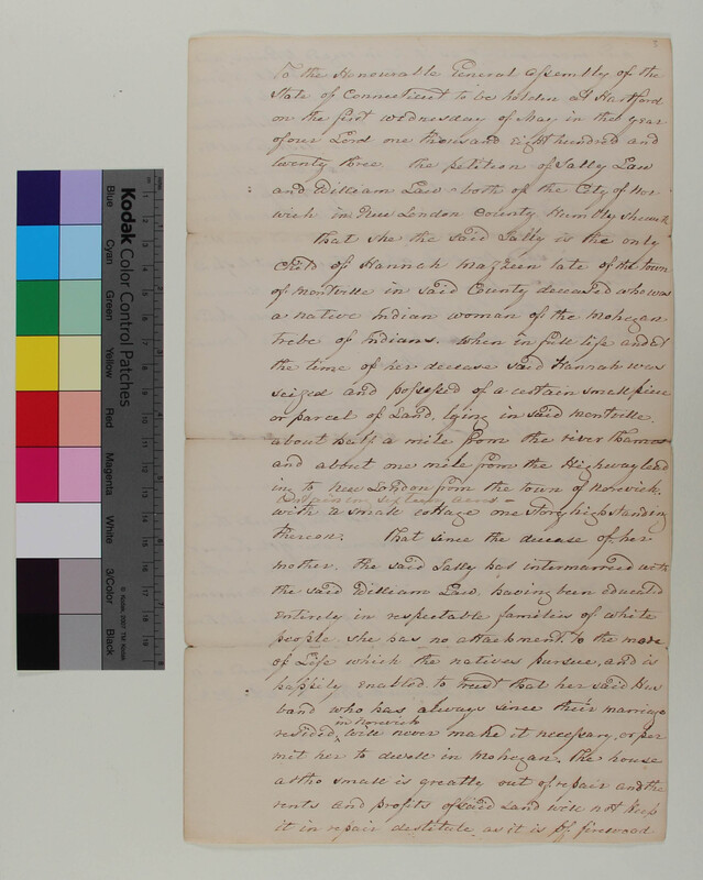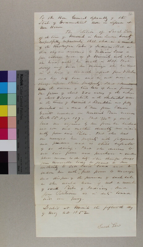 Petition of Sarah Law, a Mohegan Indian, for Liberty to Sell Land